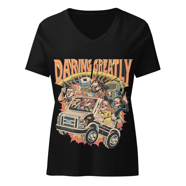 This is the women’s edition of our 2025 tour shirt—featuring original hand-drawn art by Brazilian illustrator @yurireisart, inspired by the chaos and charm of van life on tour. The design pulls from that iconic Foo Fighters shirt, reimagined with a Daring Greatly twist.